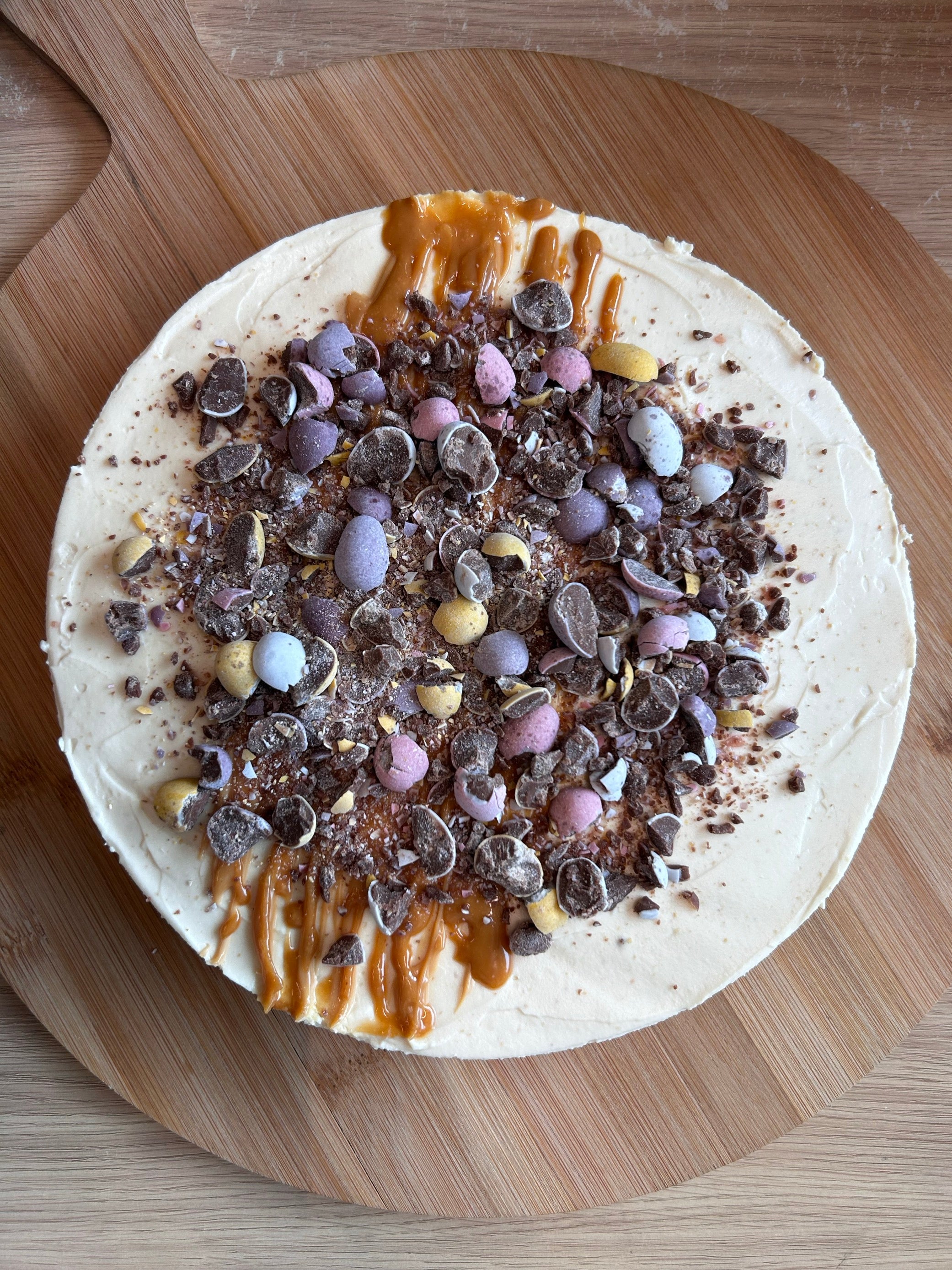 Swirl ManiLife Salted Caramel Peanut Butter over the top, crush up Mini Eggs and scatter over the top or create a chocolate nest which can hold Mini Eggs.